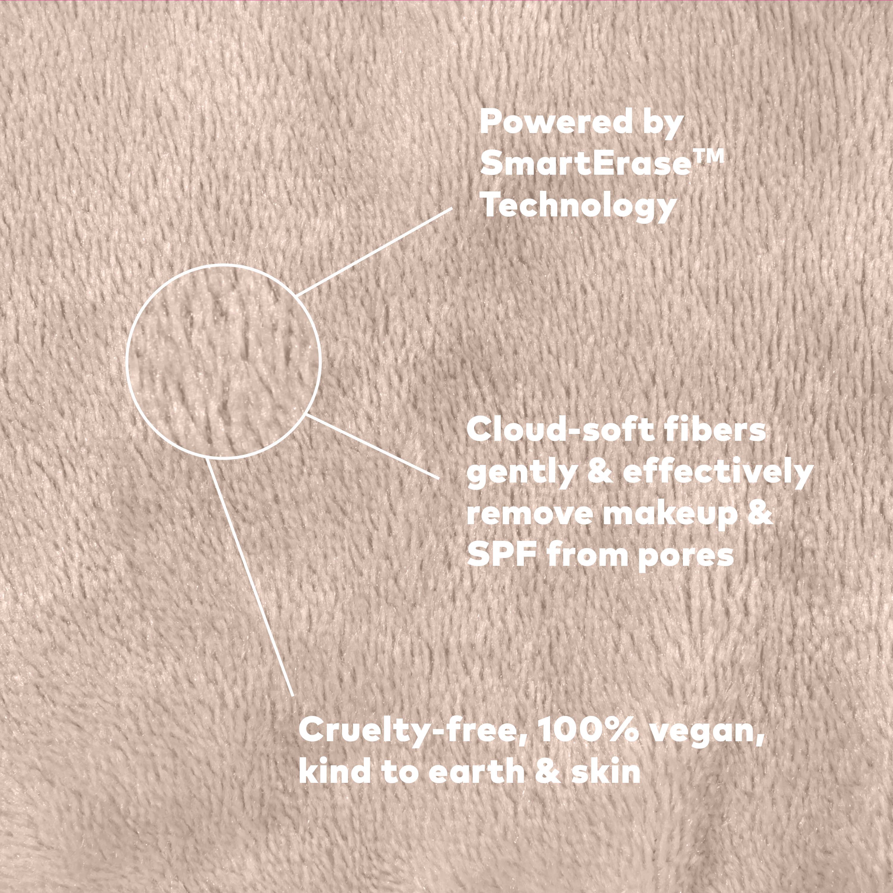 Crafted with millions of cloud-soft fibers, this reusable, machine-washable cloth is 2.5x more effective than traditional makeup wipes & safe for all skin types, including sensitive skin & lash extensions. One side removes makeup, while the other gently exfoliates.