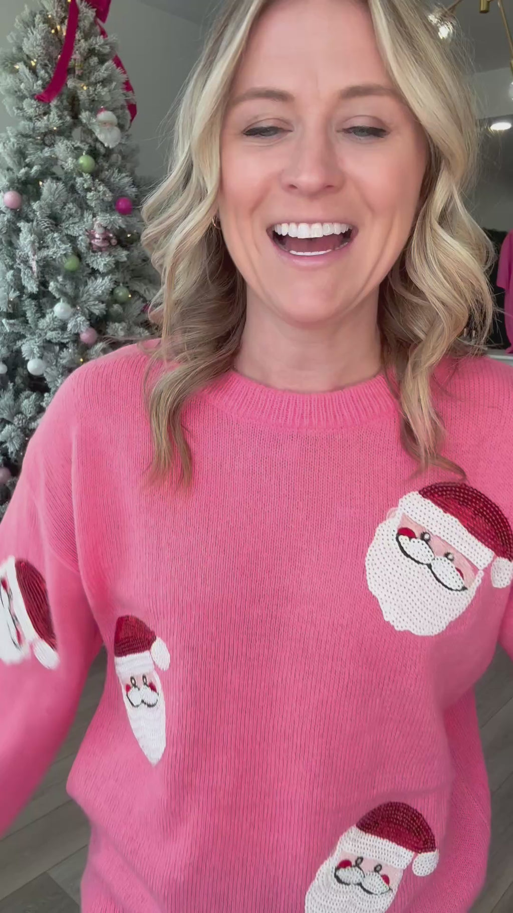 Sequin Santa Pink Long Sleeved Sweater