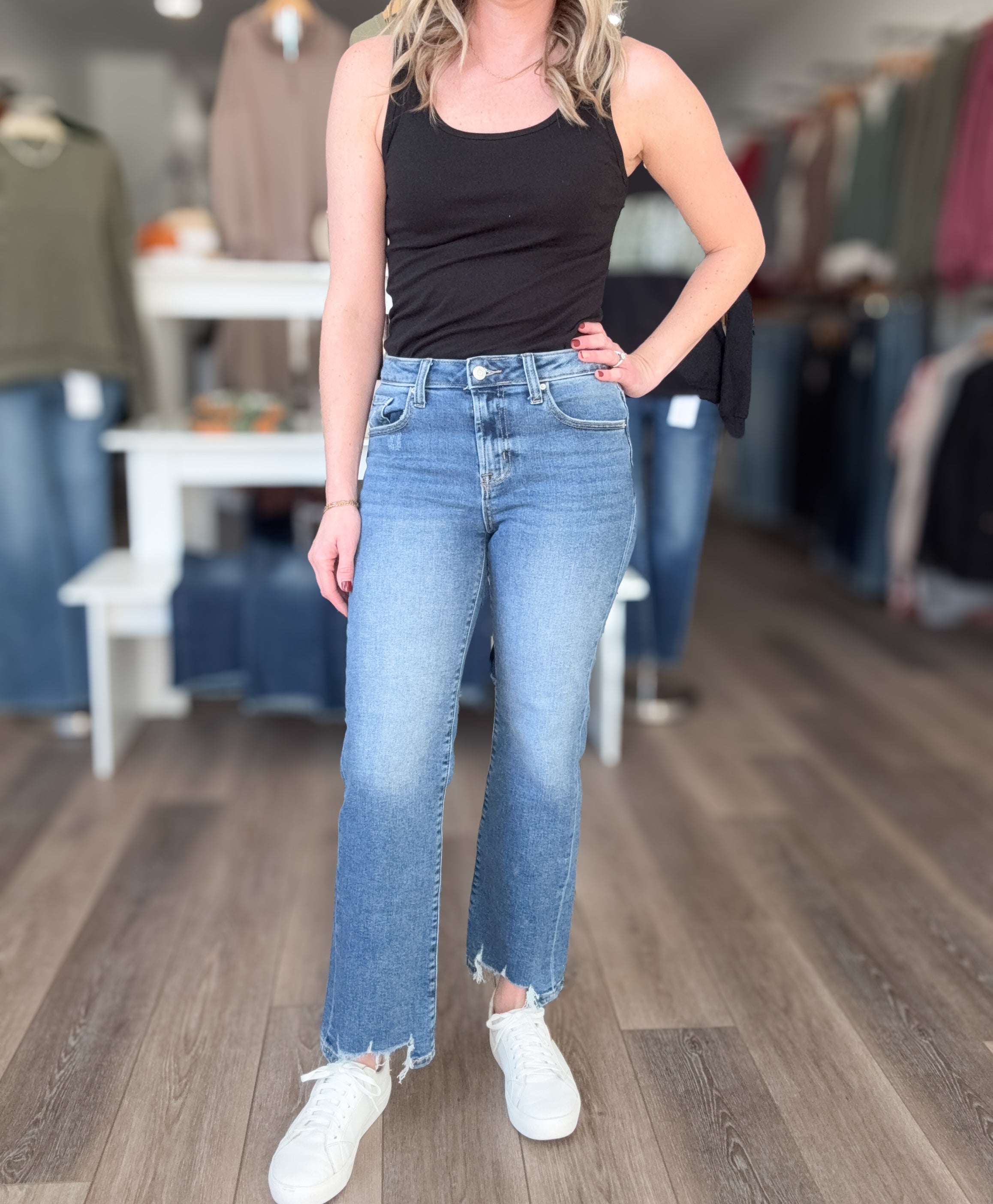 Your go-to denim for everyday comfort and effortless style! The Audrey High Rise Raw Hem Jeans feature a flattering high-rise fit and modern raw hem detail that gives them just the right amount of edge. Made with soft, stretchy denim that moves with you, these jeans will quickly become a wardrobe favorite.