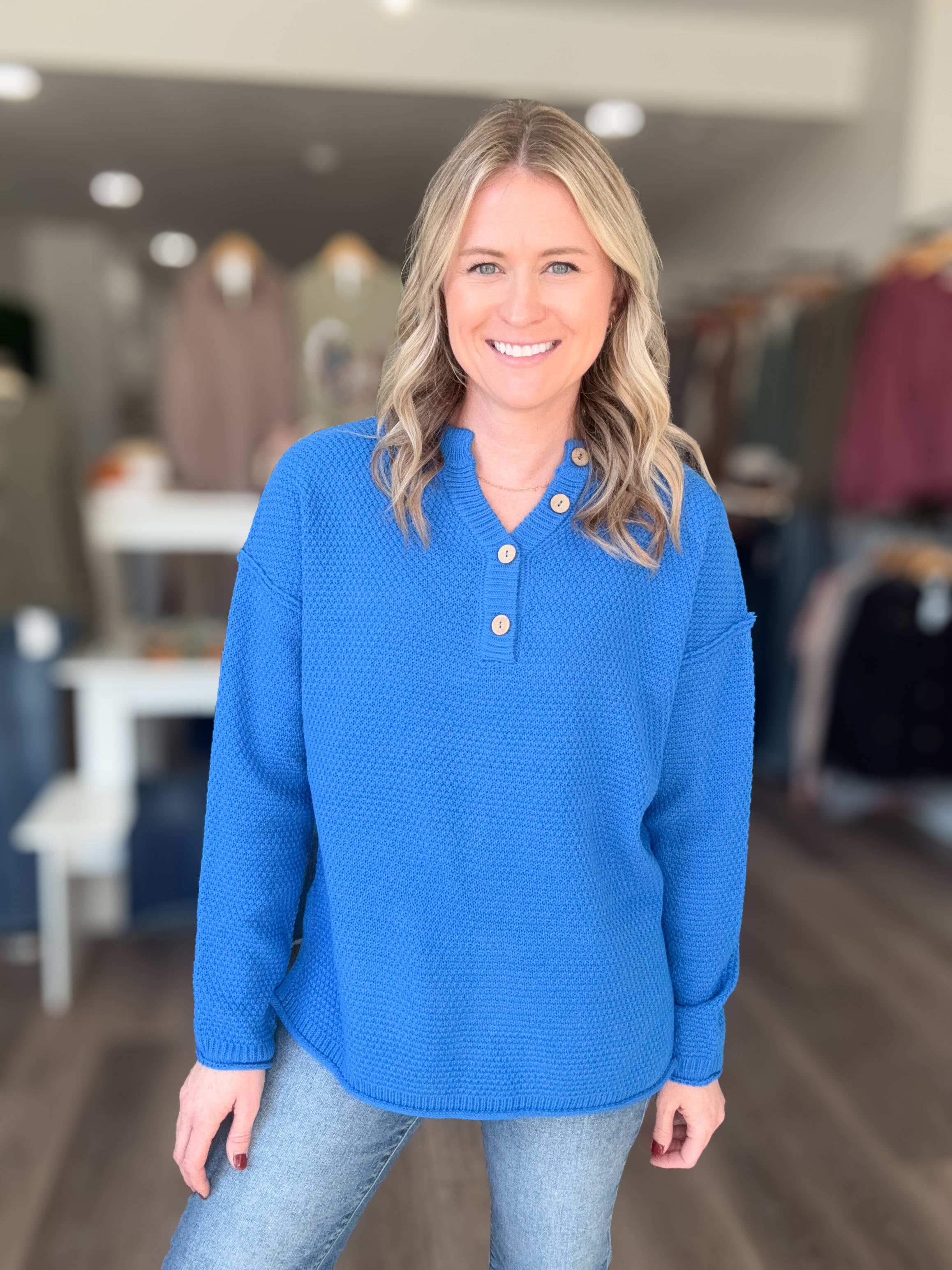 Cozy meets classic in this timeless Henley Buttoned Sweater — the perfect everyday piece for effortless fall and winter style. Designed with a textured knit and a 4-button Henley neckline, this midweight sweater delivers both warmth and breathability. Its relaxed silhouette makes it easy to layer or wear solo, while the high-quality knit ensures long-lasting comfort and durability.