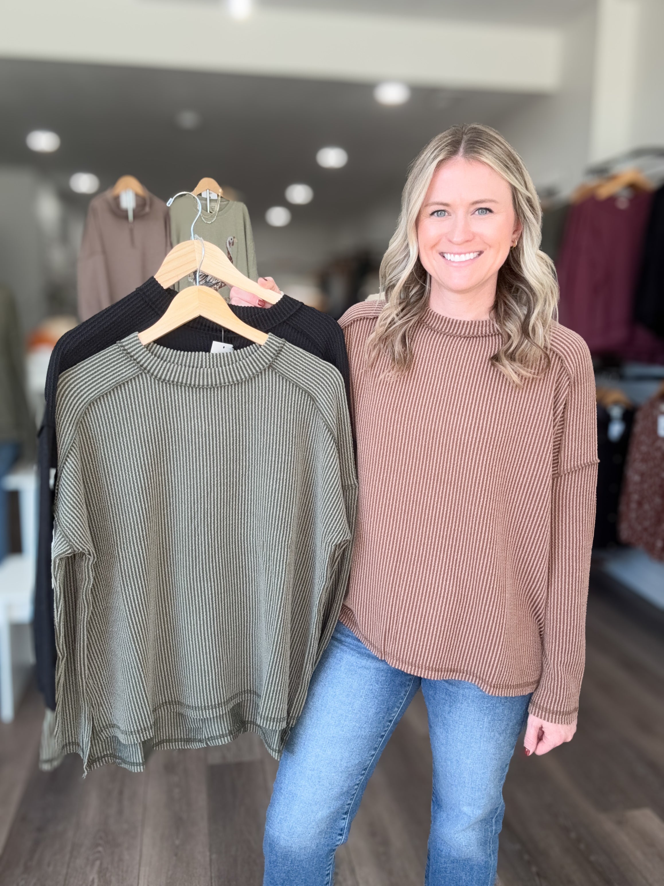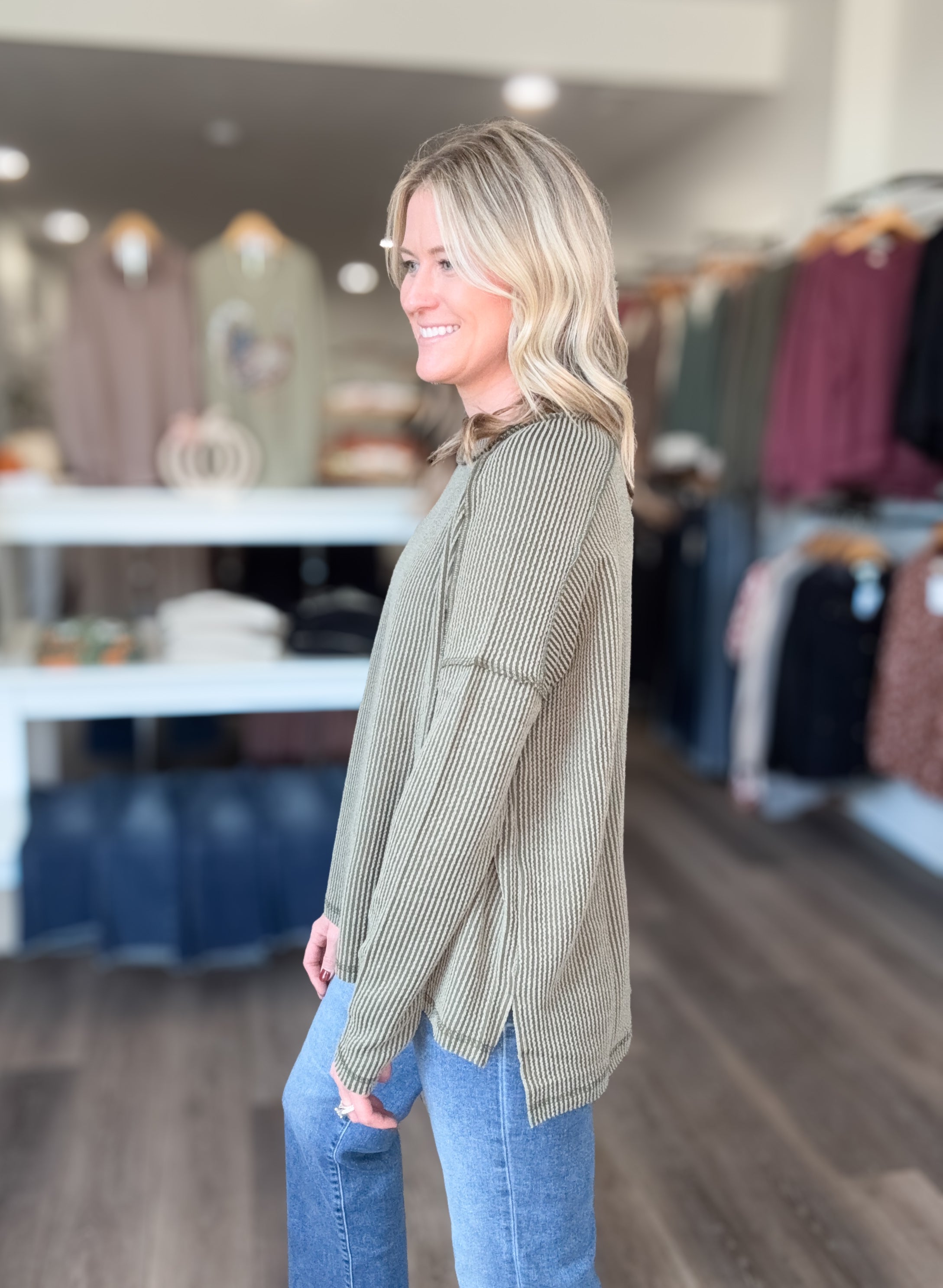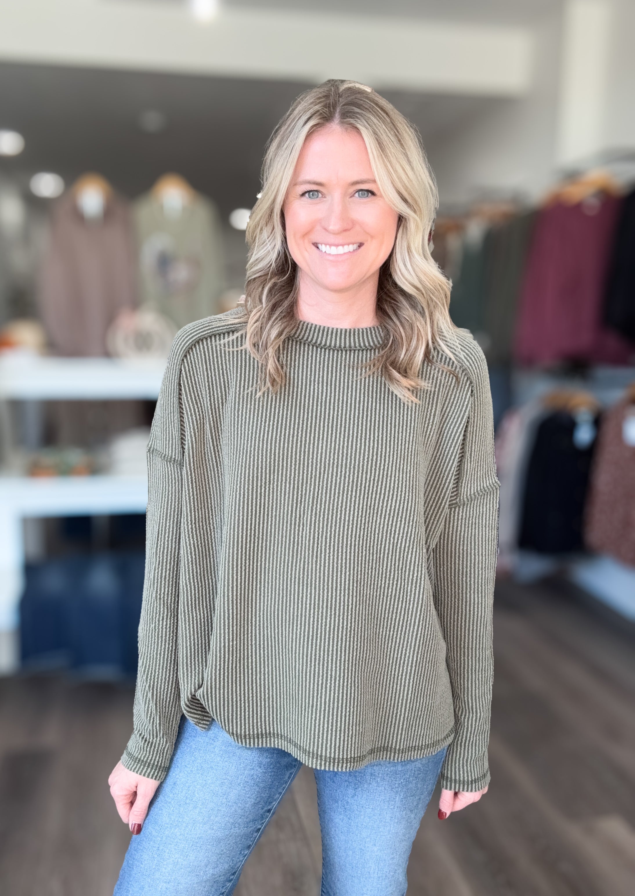 Blake Rounded Neck Ribbed Long Sleeved Top